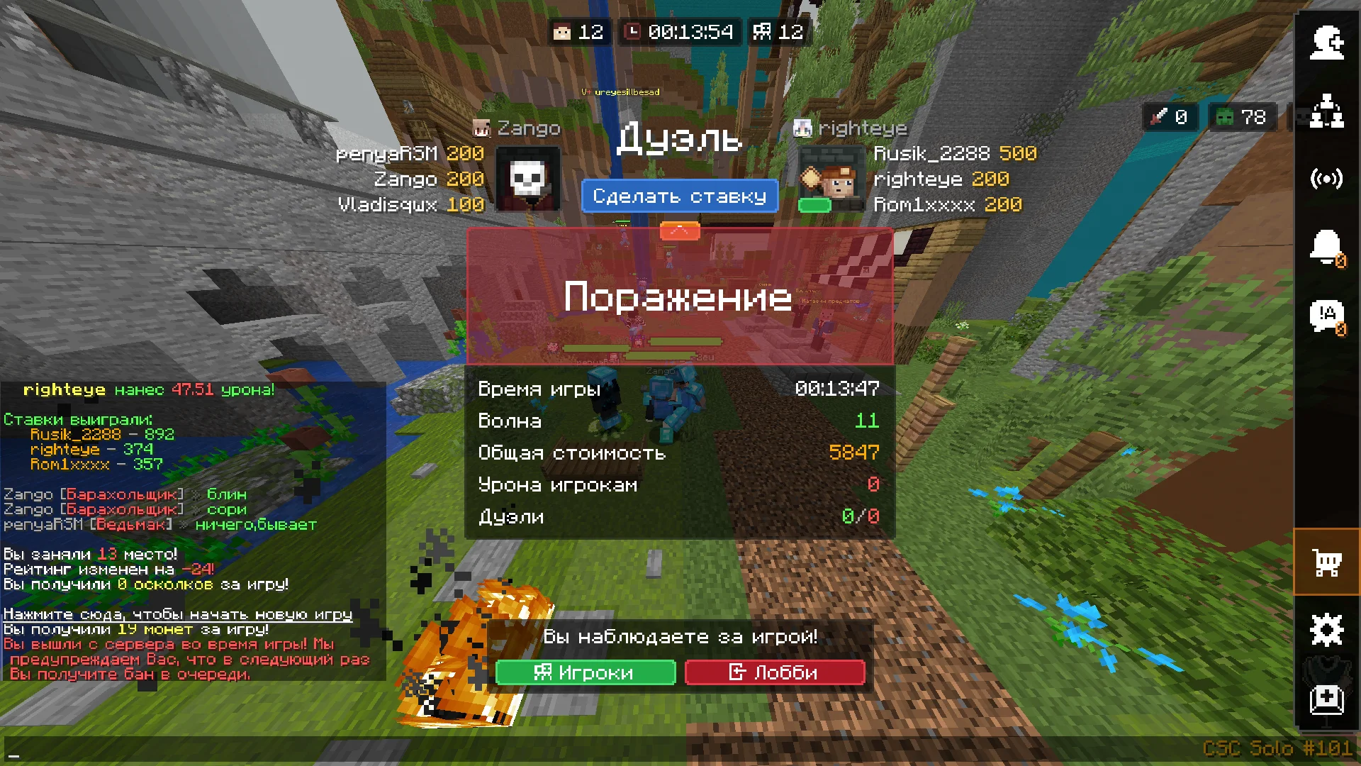 Залагало при игре в кск и просто выкинуло изменив рейтинг на -24