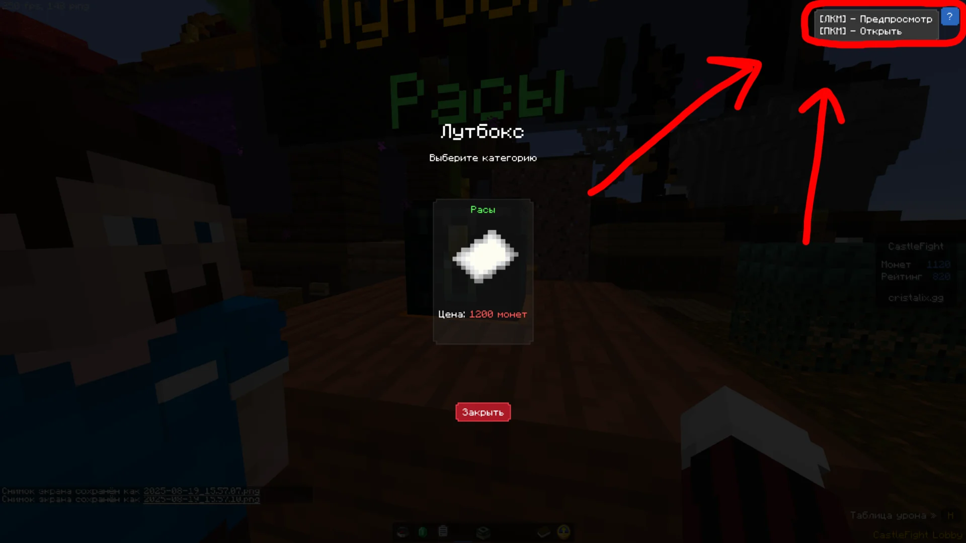 Баг в CastleFight, невозможно купить лутбокс с расами, в меню покупки лутбокса при наведении на иконку покупки/предпросмотра - написано ПКМ - предпросмотр, ЛКМ - купить, в том же меню покупки справа в углу при наведении на знак вопроса указано обратное - ПКМ - купить, ЛКМ - предпросмотр (скриншот 1,2).